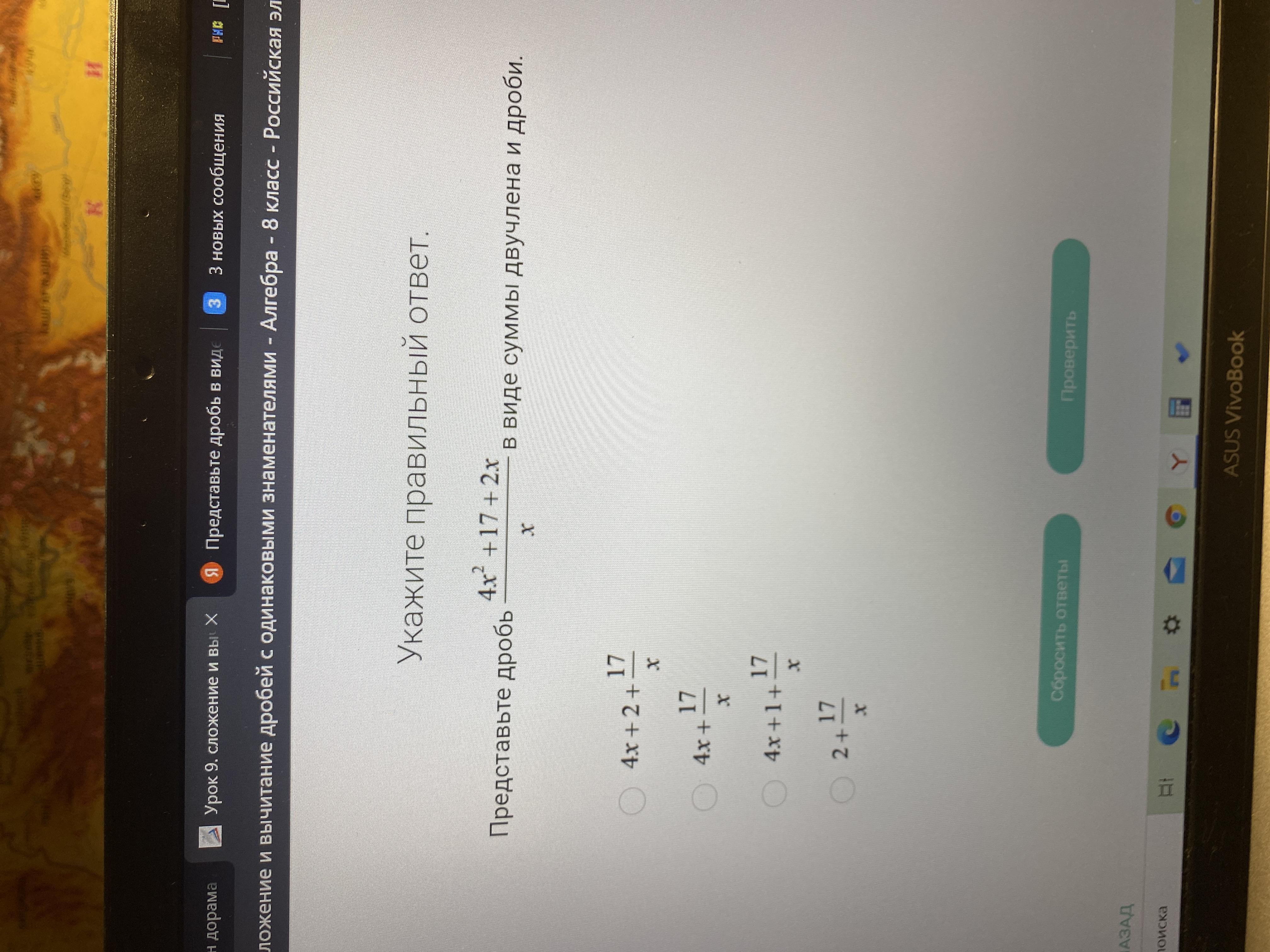 2) Представьте дробь в виде суммы двучлена и дроби (дробь на 2 фото)
