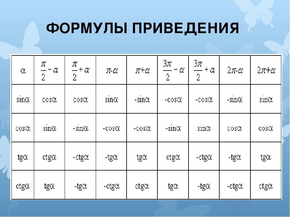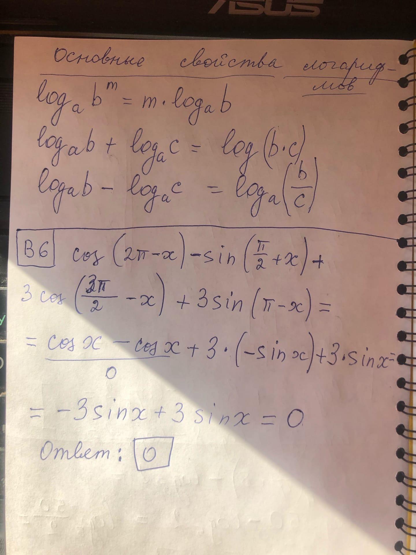 Прикреплены таблица логарифмов (задание В5) и формулы приведения (задание В6).