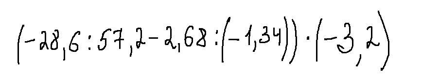 (-28,6:57,2-2,68:(-1,34))×(-3,2)= - 4,8