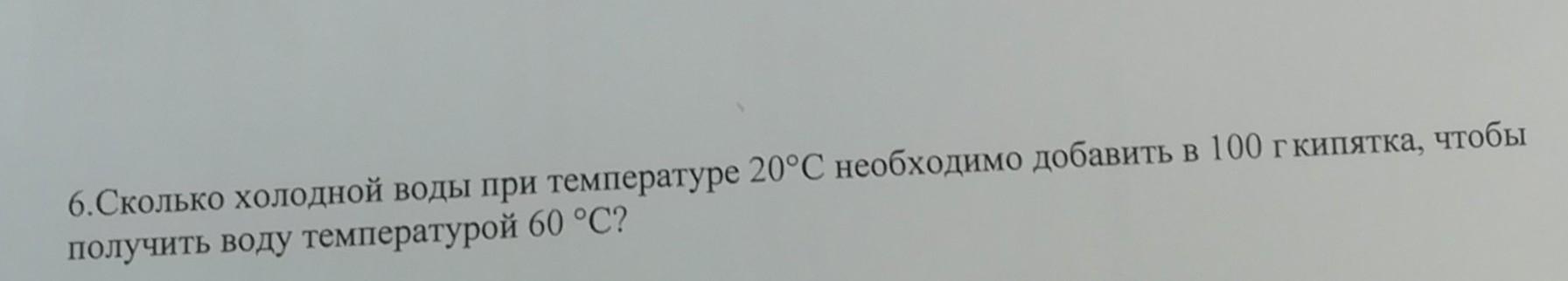 сколько холодной воды при температуре 20 градусов необходимо добавить 100 г кипятка чтобы получить воду температурой 60 градусов