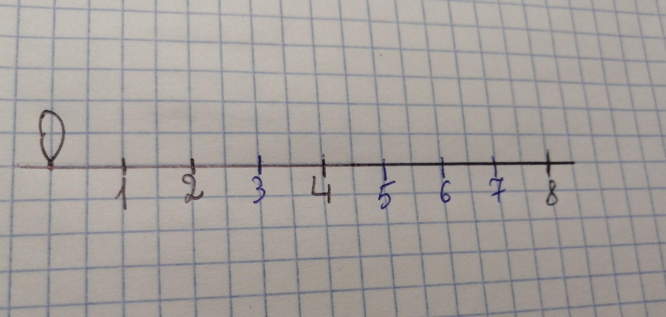 Начертить прямую и отметьте на ней точку О ,отступить от точки О вправо на 4 клетки,поставьте засечку и подпишите под ней число 2.Отметьте на этой координатной прямой числа 1,4,8