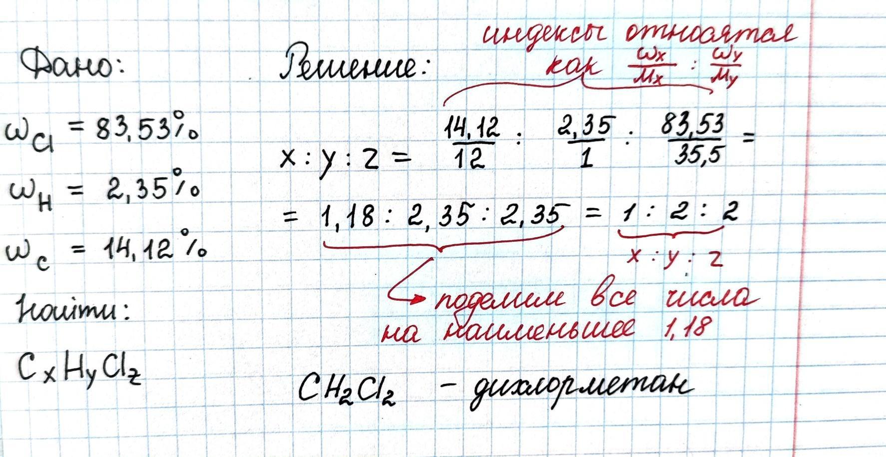 Выведите молекулярную формулу хлорпроизводного углеводорода, содержащего хлора 83,53%, водорода 2,35%, углерода 14,12%