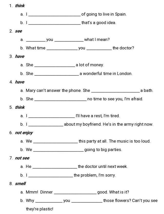 8) A. Mmm Dinner smells is good. B . Why are you smelling those flowers?