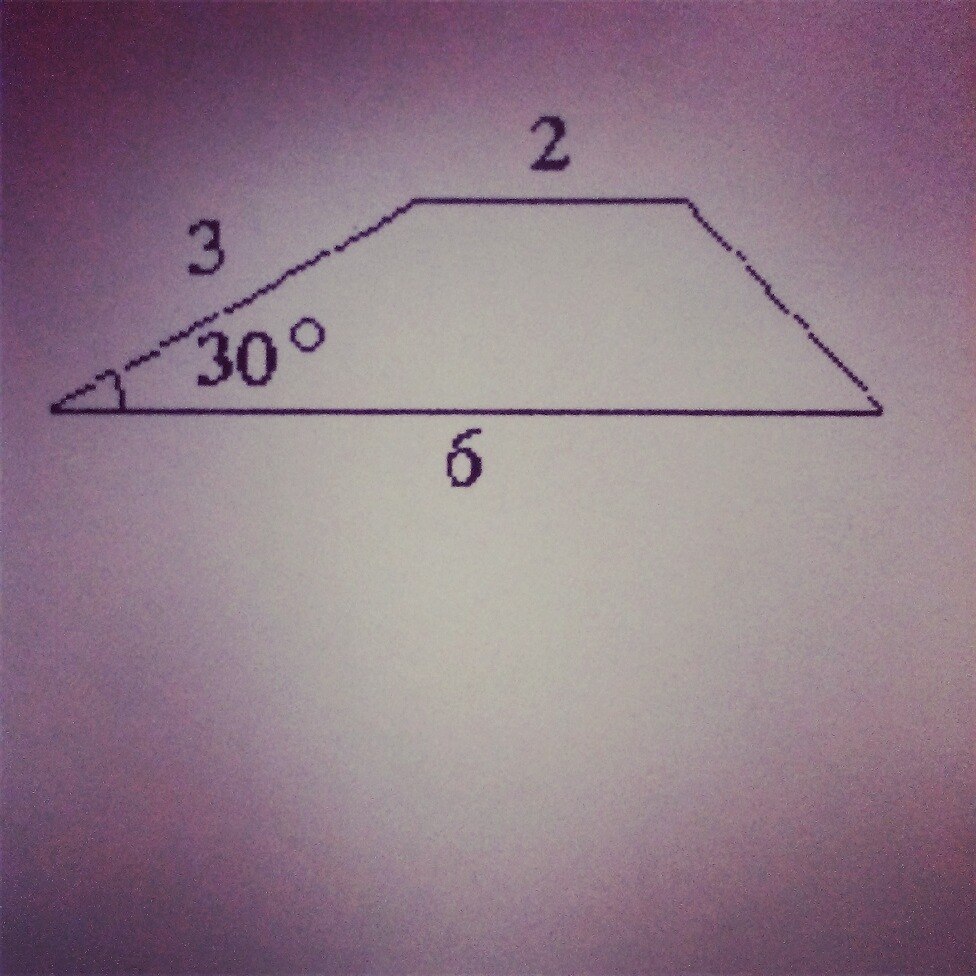 Боковая сторона трапеции равна 3, а один из прилегающих к ней углов равен 30 градусам. Найдите площадь трапеции, если ее основания 2 и 6.