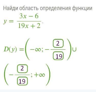 Відповідь: D(y)= (-∞;-2/19) ∪ (-2/19;+∞)