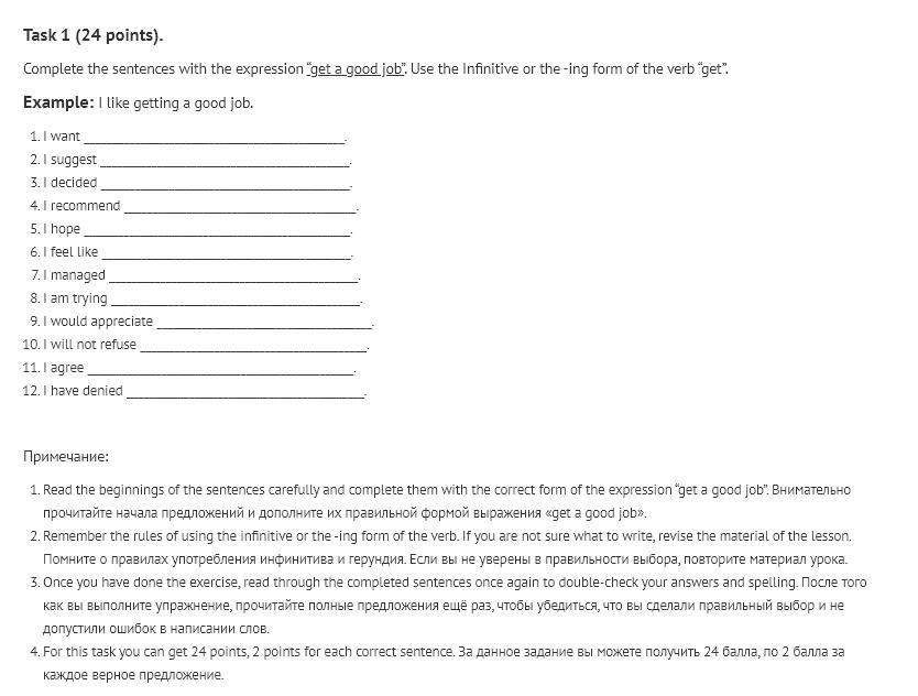 Завершите предложения выражением «хорошо поработай (get a good job)». Используйте инфинитив или форму -ing глагола «get».