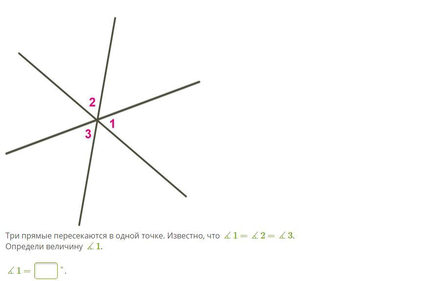 Три прямые пересекаются в одной точке. Известно, что ∡1 = ∡2 = ∡3.