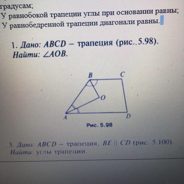 Трапеция АВСД, ∠АВО=∠СВО, ∠ВАО=∠ДАО.