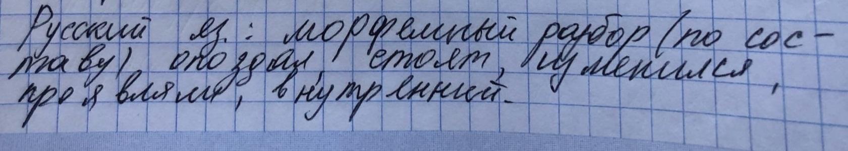 Русский язык: морфемный разбор (по составу) опоздал, стоят, изменился, проявляли, внутренний.