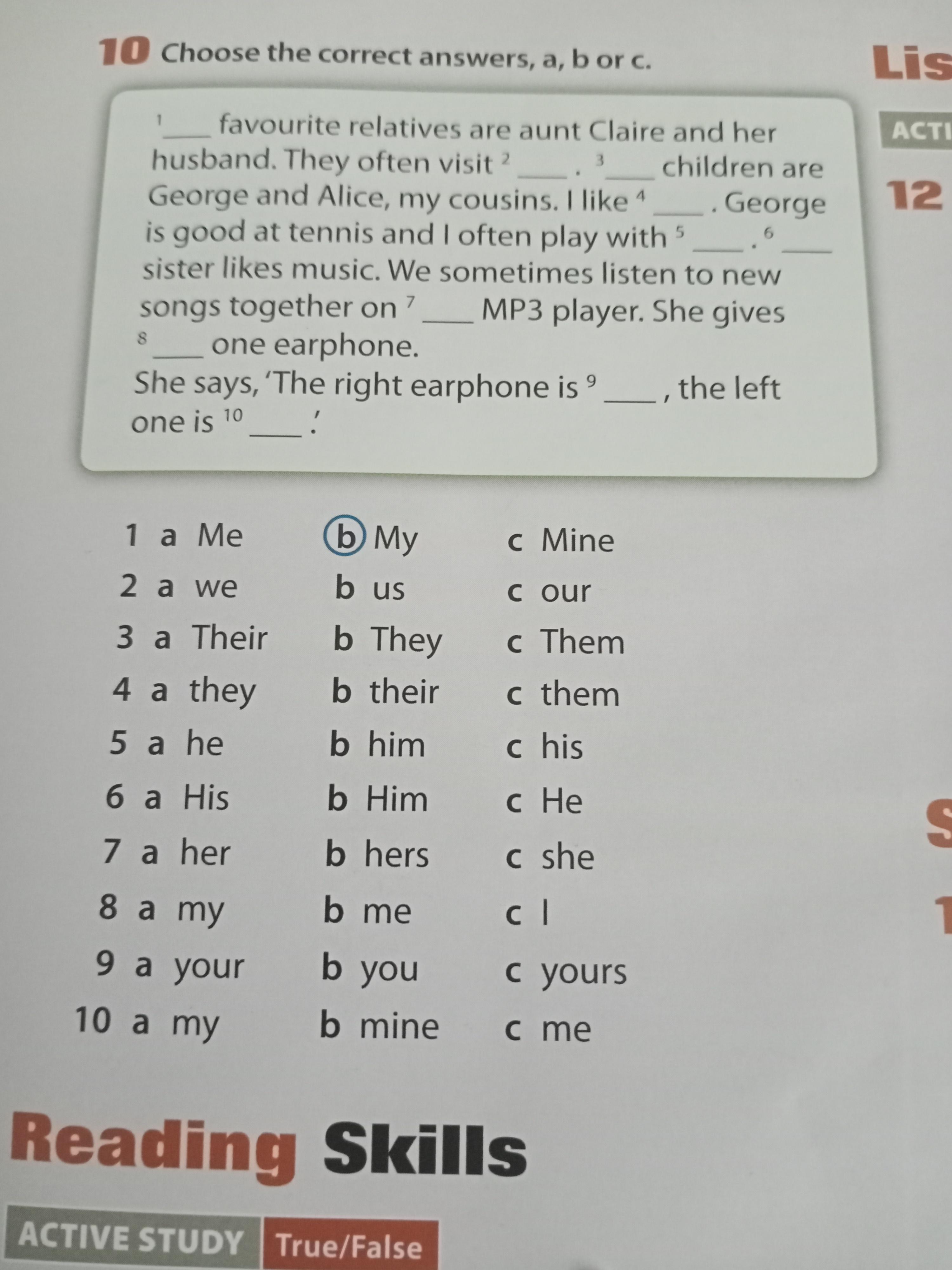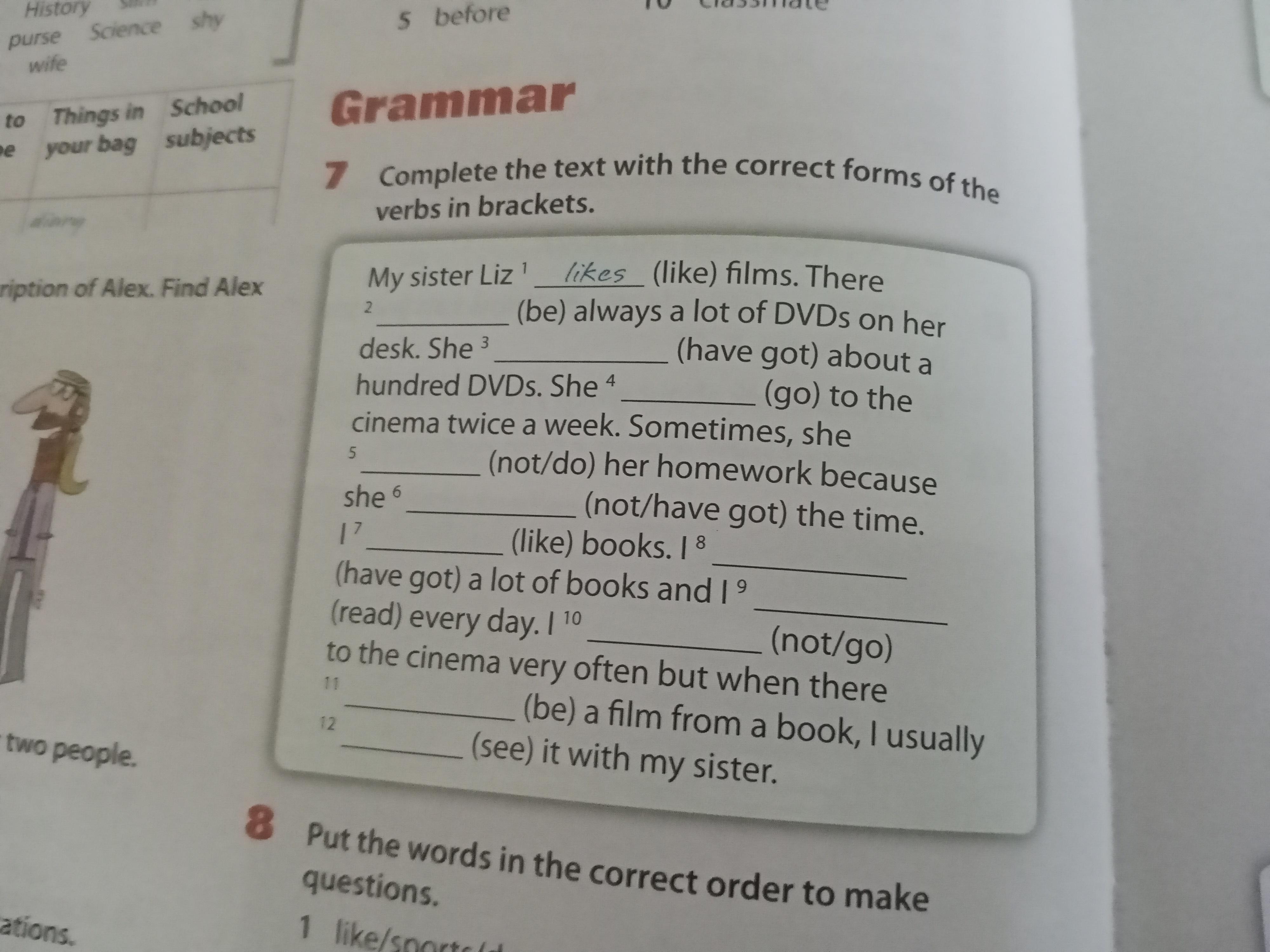 1 likes. 2 are. 3 has got. 4 goes. 5 don't do. 6 doesn't have got. 7 like. 8 have got. 9 read. 10 don't go. 11 is. 12 see
