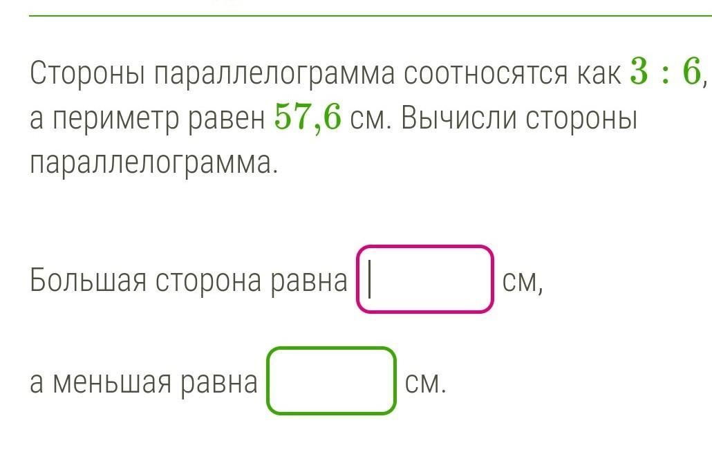 a = 9,6 (Меньшая сторона); b = 19,2 (Большая сторона)