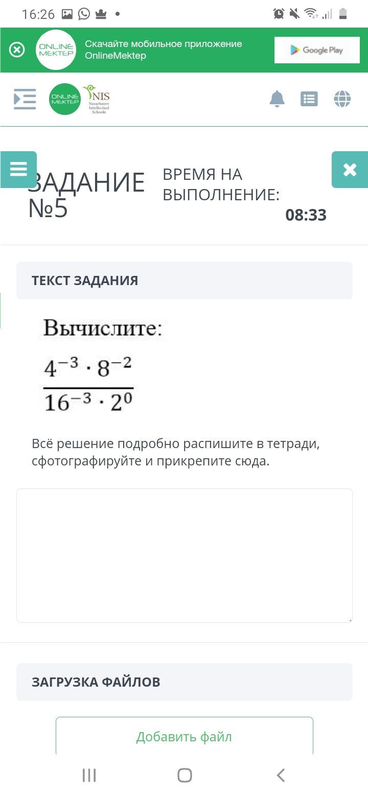 4⁻³*8⁻²/(16⁻³*2⁰)=2⁻⁶*2⁻⁶/(2⁻¹²*1)=2⁻¹²/2⁻¹²=1