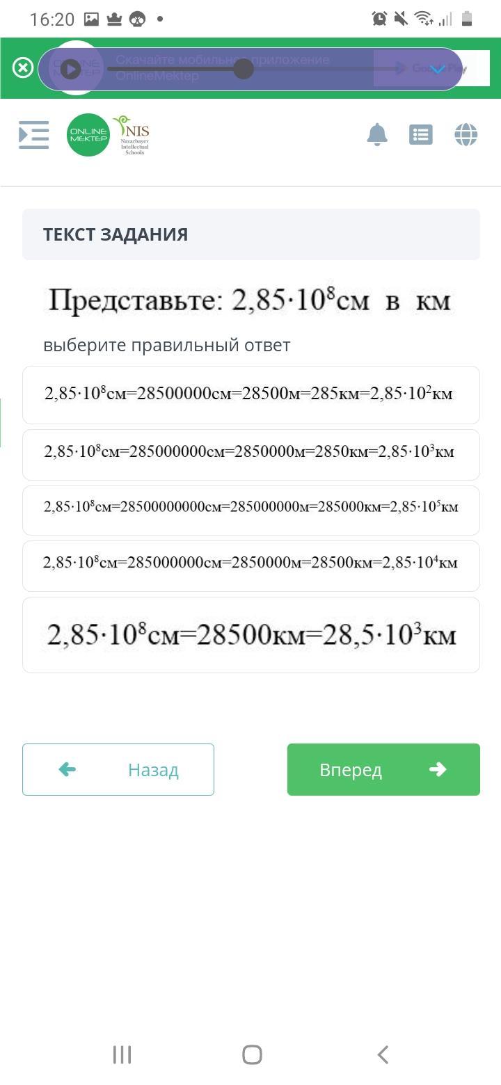 2.85*10⁸см=(2.85*10⁸/10⁵)км=2.85*10⁸⁻⁵ км=2.85*10³ км