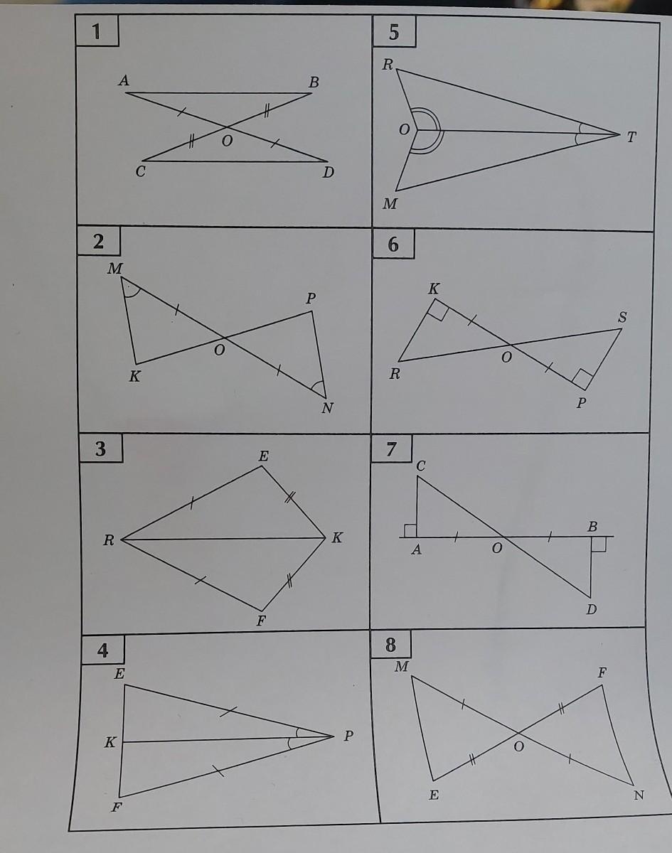 8) по 1 пр рав треуг. ( МО=ON; EO=OF; угол MOE=NOF как вертикальные)