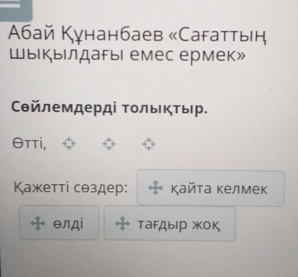 || Х Абай Құнанбаев «Сағаттың шықылдағы емес ермек» Сөйлемдерді толықтыр. Өтті, , Қажетті сөздер: