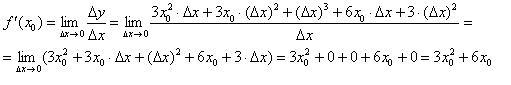 в первой дроби поделили на Δх каждый член. Далее, поскольку, Δх стремится к нулю все произведения с ним также равны нулю и их убрали.