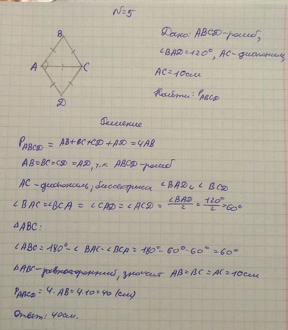 Дано: КМСТ - ромб, КС - діагональ, КС=10 см. ∠МКТ=120°. Знайти Р (КМСТ).