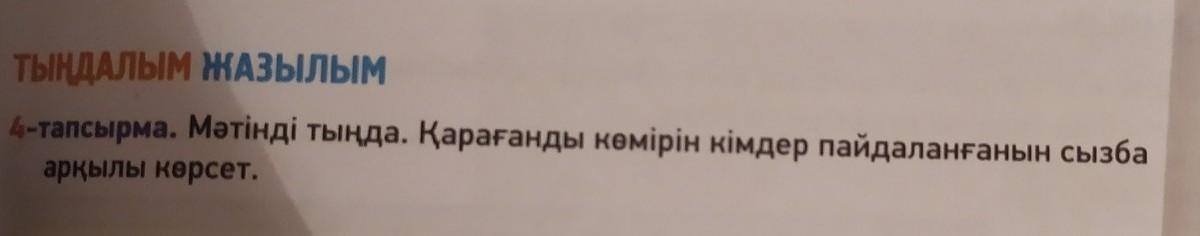4 тапсырма. Мәтінді тыңда. Қарағанды көмірін кімдер пайдаланғанын сызба арқылы көрсет.