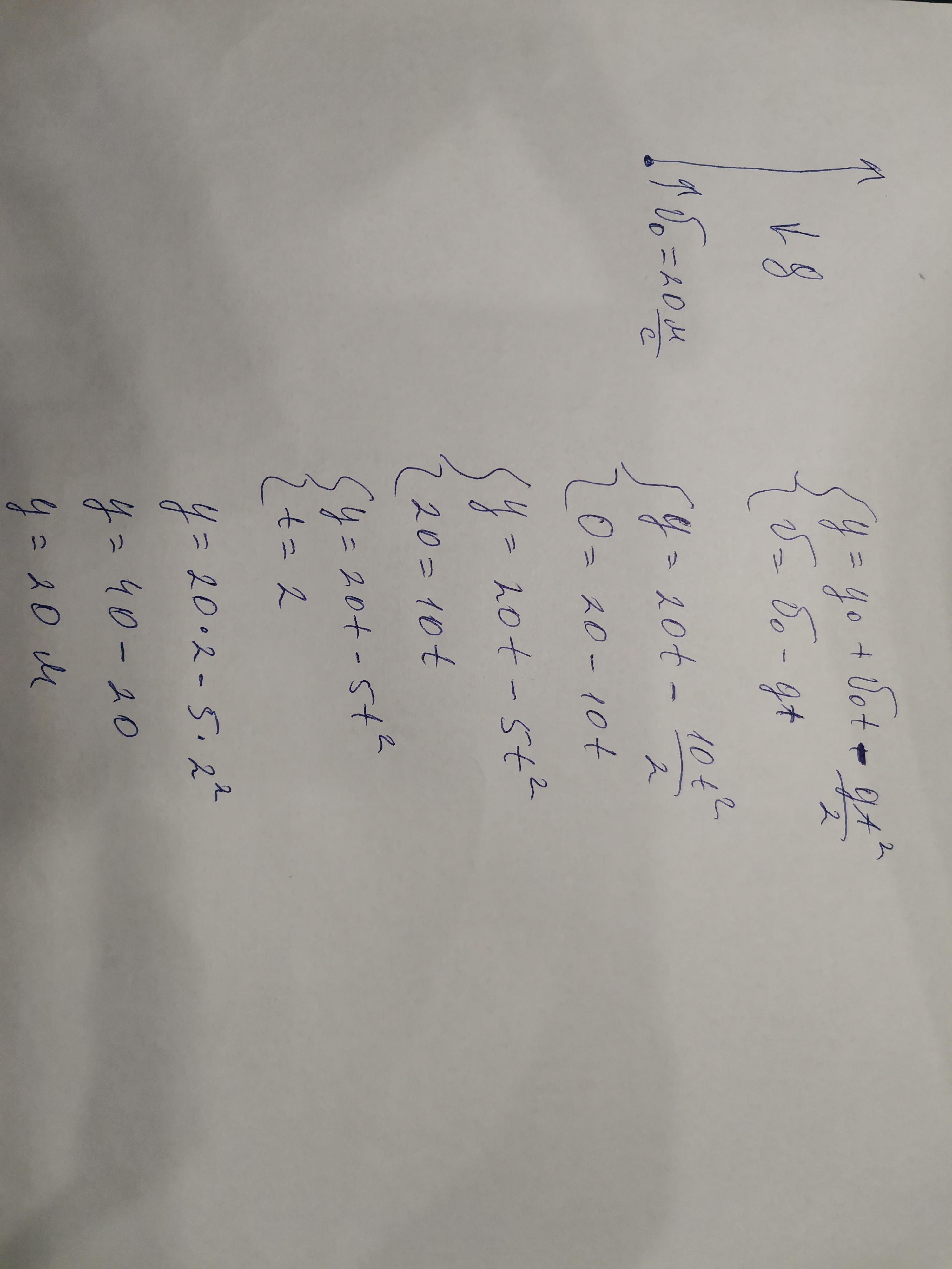 h=(0 - 400)/(-20)=20 м.
