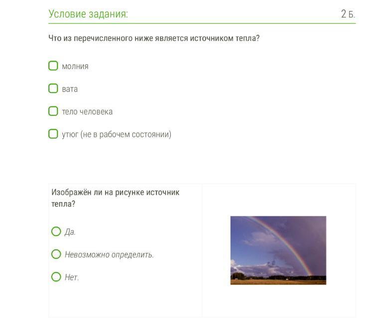 1) Молния, вата и неработающий утюг не являются источниками тепла
