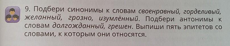 подбери синонимы к словам своенравный, горделивый,желанный, Грозный, изумлённый.подбери антонимы к словам долгожданные, Грешен.Выпиши пять эпитетов со словами которым они относятся. Дам лучший ответ!!!