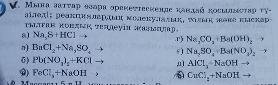 в)FeCl3+3NaOH➜Fe(OH)3⇩+3NaCl