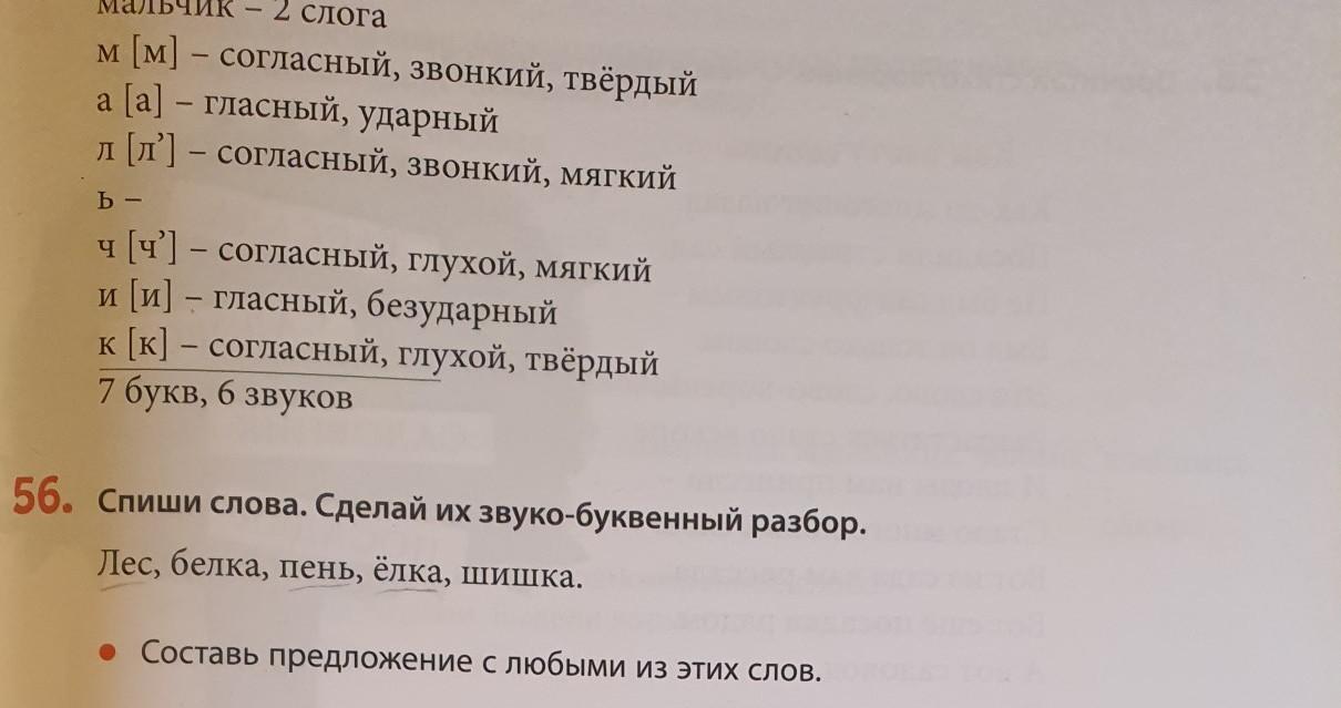 лес-[л'эс] 3 буквы 3 звука 2 согл. 1 гл.