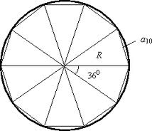 Угол между радиусами определяется так - 360°/10 = 36°.