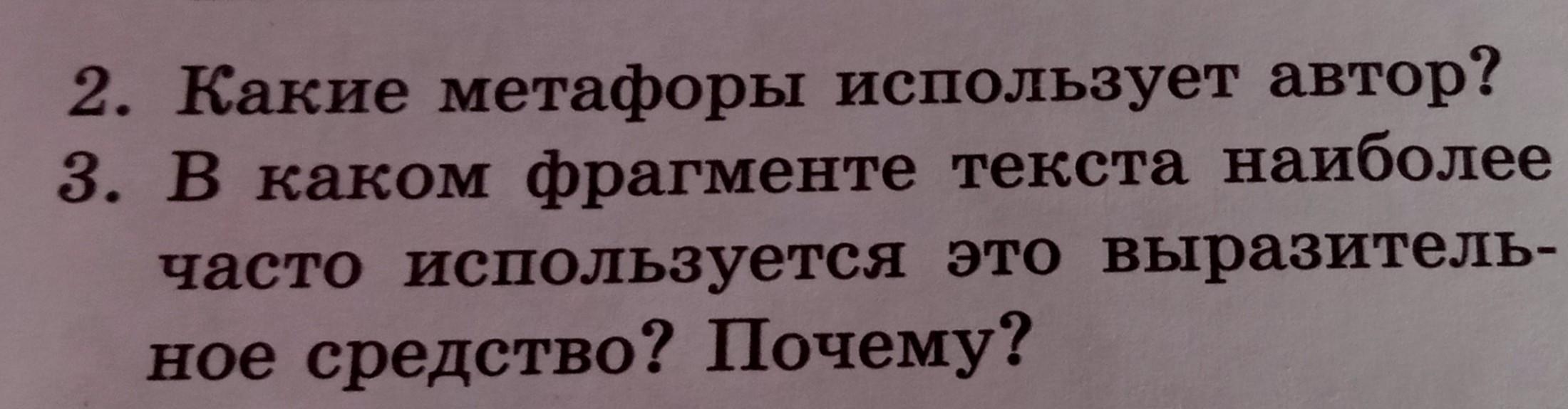 2. Какие метафоры использует автор? 3. В каком фрагменте текста наиболее часто используется это выразитель- ное средство? Почему? нарисовать те