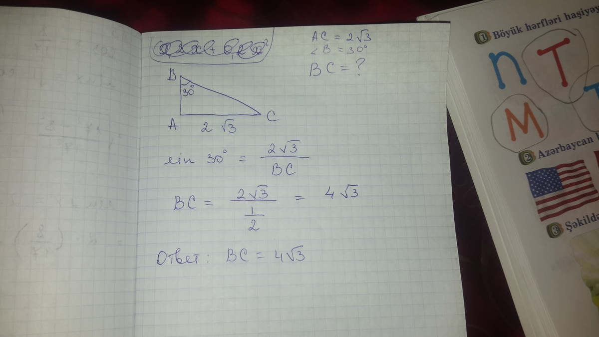 Найдите длину катета BC прямоугольного треугольника ABC с прямым углом C если известно что: