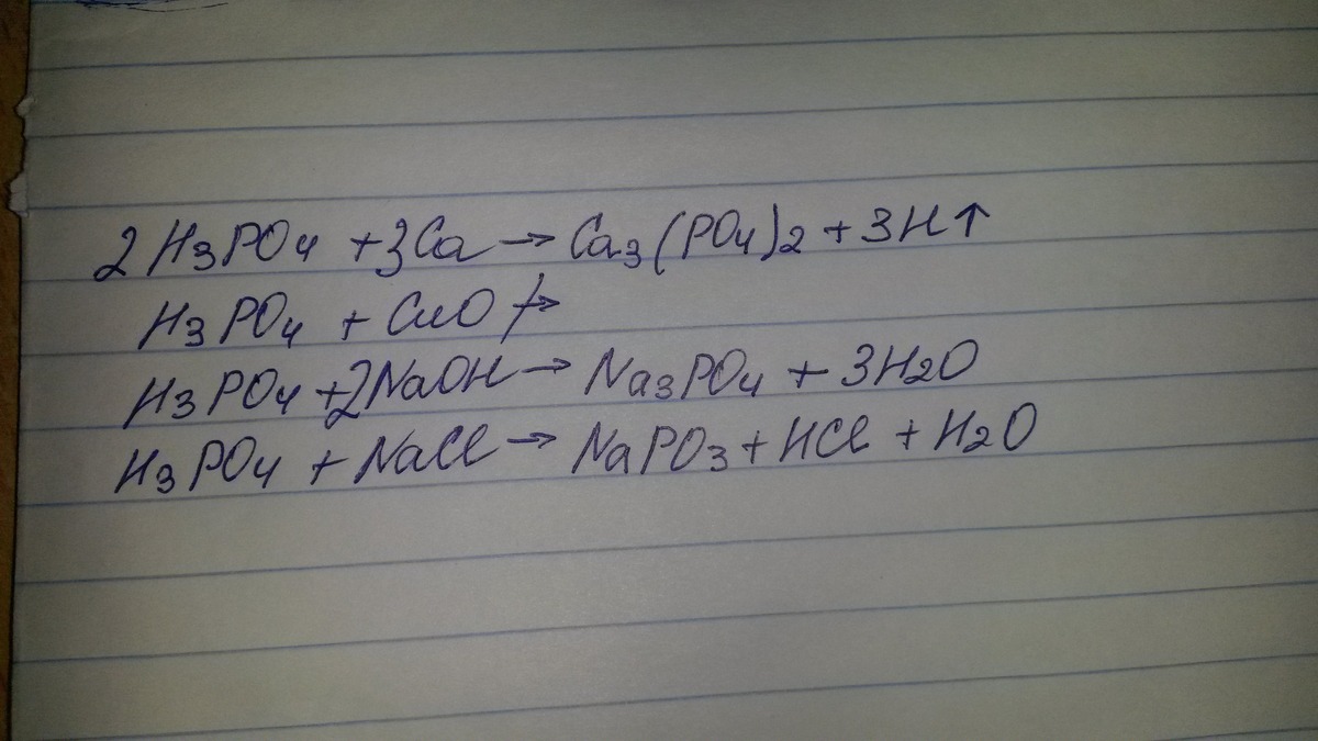 С каким из представленных веществ будет реагировать H2PO4: Ca, Ag, C, CuO, CO2, ArPO3, NaCl, HCl, NaOH ? Прошу помочь.