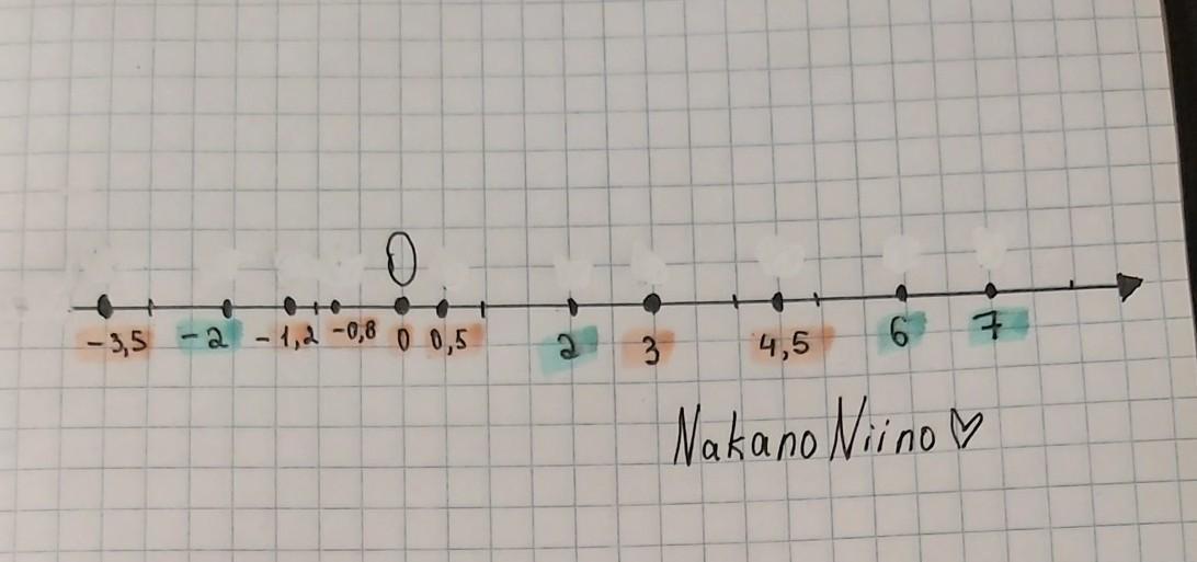 1. Отметьте на числовой оси точки, соответствующие заданным числам 3 - 3,5 -1,2; -0,8; 4,5; 0,5. 2 5 Укажите несколько точек самостоятельно. 1 — :