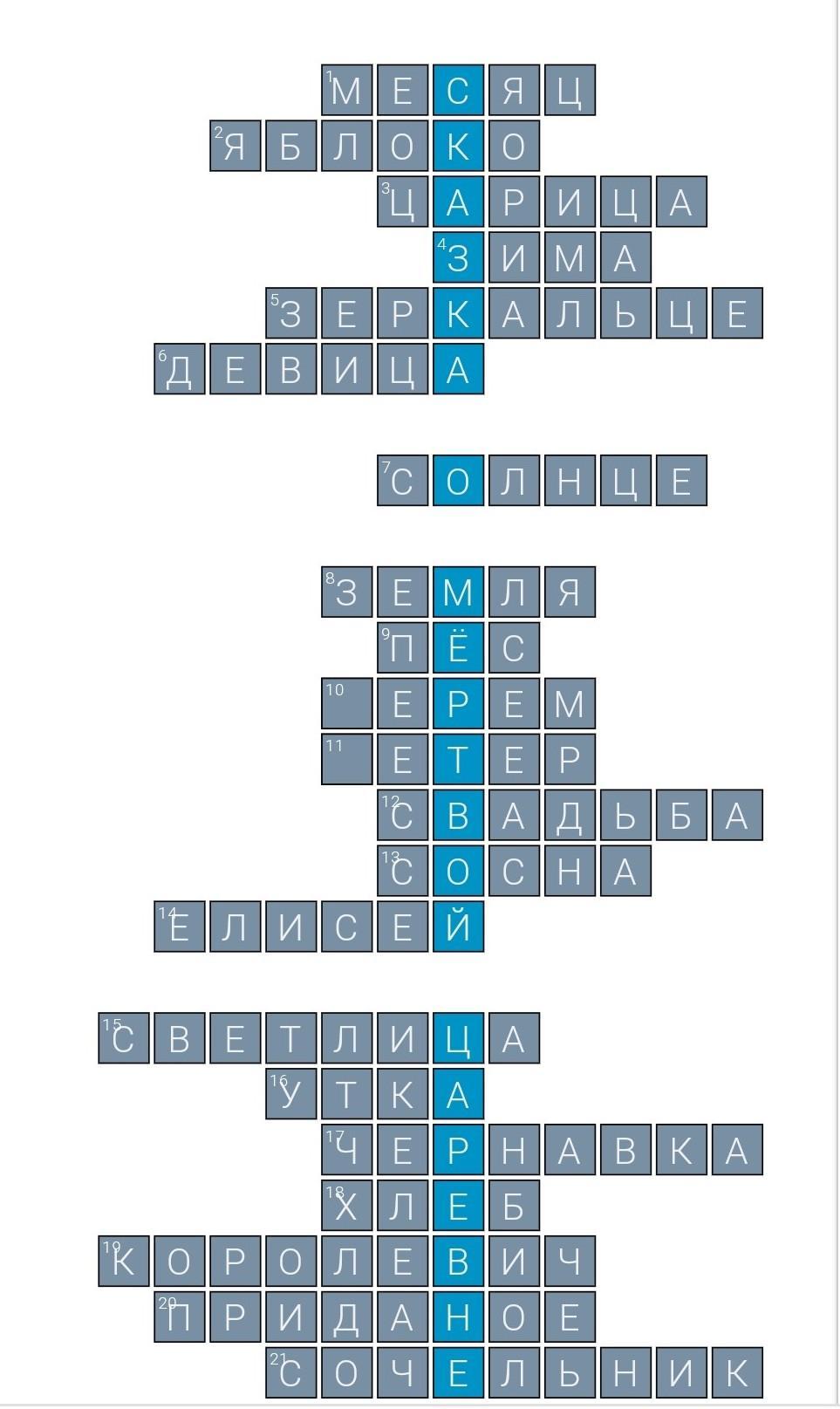 можете пожалуйста сделать кроссворд про сказку "мёртвая царевна и семь богатыре" с ответами и вопросоми