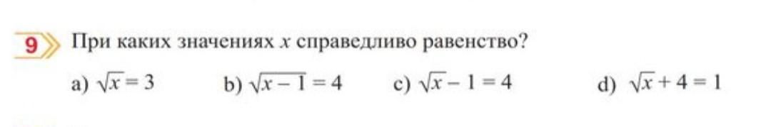d) тут видимо неверное равенство, так как чтобы получилось 1, нужно к 4 прибавить -3...то есть из под корня должно выйти отрицательное число...а такого не может быть, так как это квадратный корень