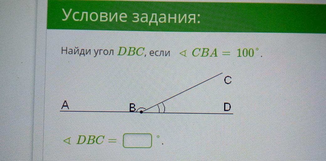 ABC смежен углу CBD. Их сумма=180град. Поэтому- Угол DBC=180-100=80