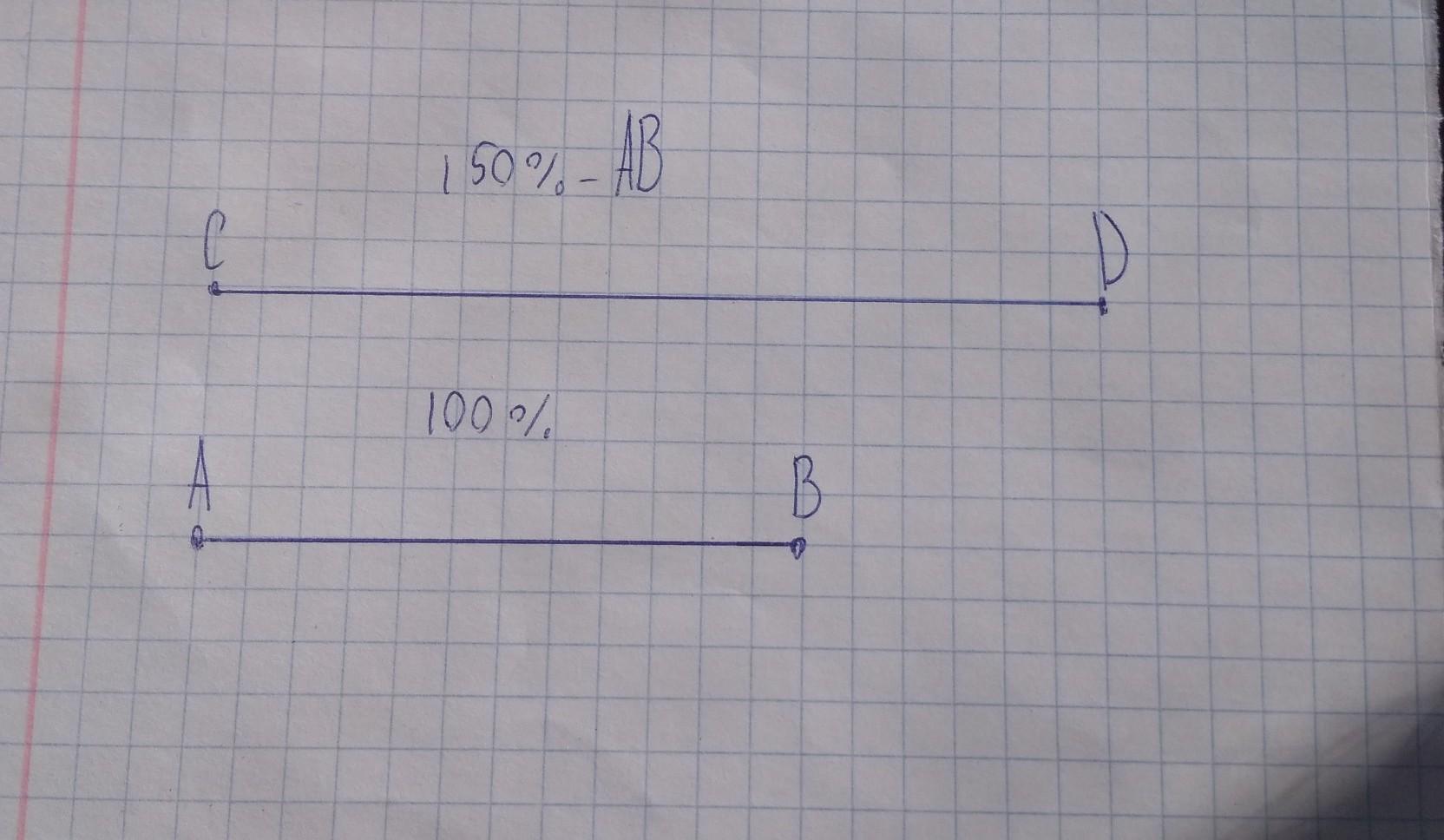 начертите отрезок AB длина которого равна 6 см. постройте: а)отрезок CD, длина которого составляет 150% длины отрезка AB