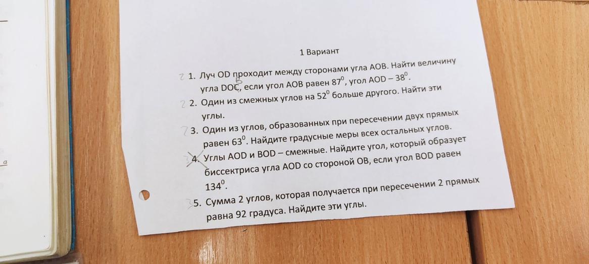 Угол DOB = AOB - AOD = 87 - 38 = 49