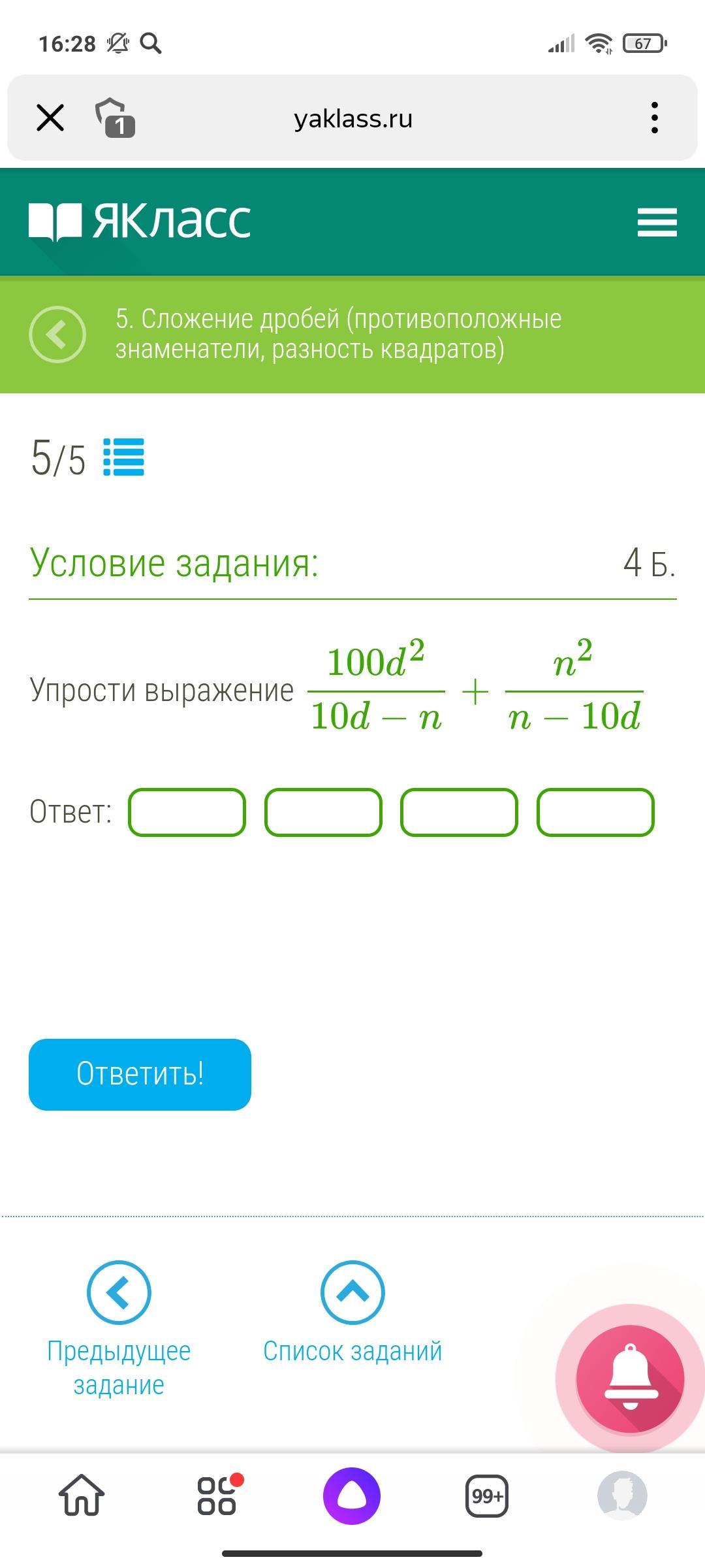 \frac{100d^2}{10d-n} +\frac{n^2}{n-10d} =\frac{100d^2}{10d-n} -\frac{n^2}{10d-n} =