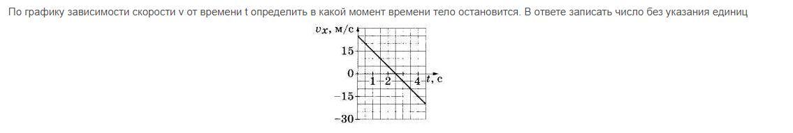 По графику зависимости скорости v от времени t определить в какой момент времени тело остановится.