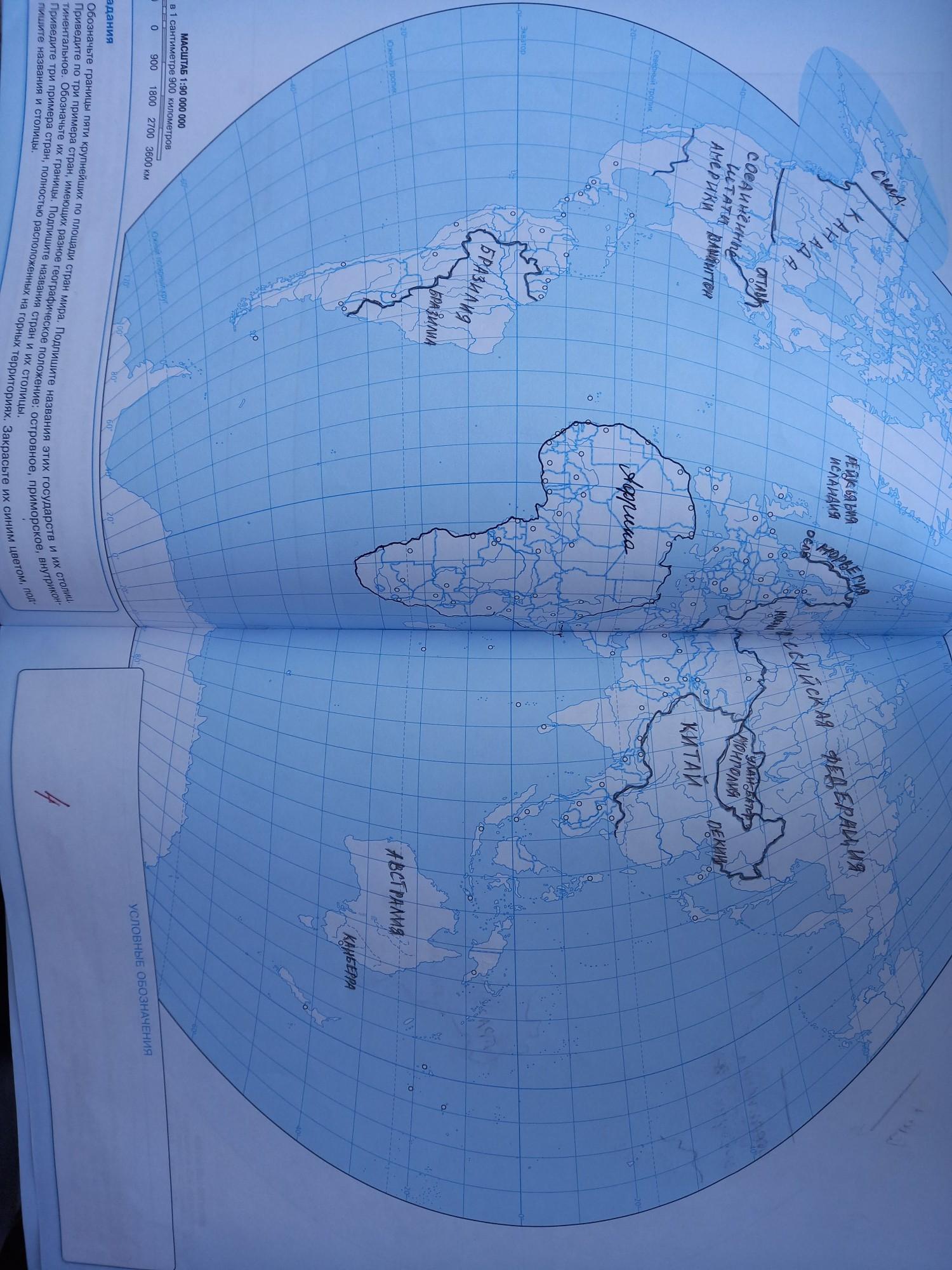 1. Обозначьте границы пяти крупнейших по площади стран мира. Подпишите названия этих государств и их столиц.