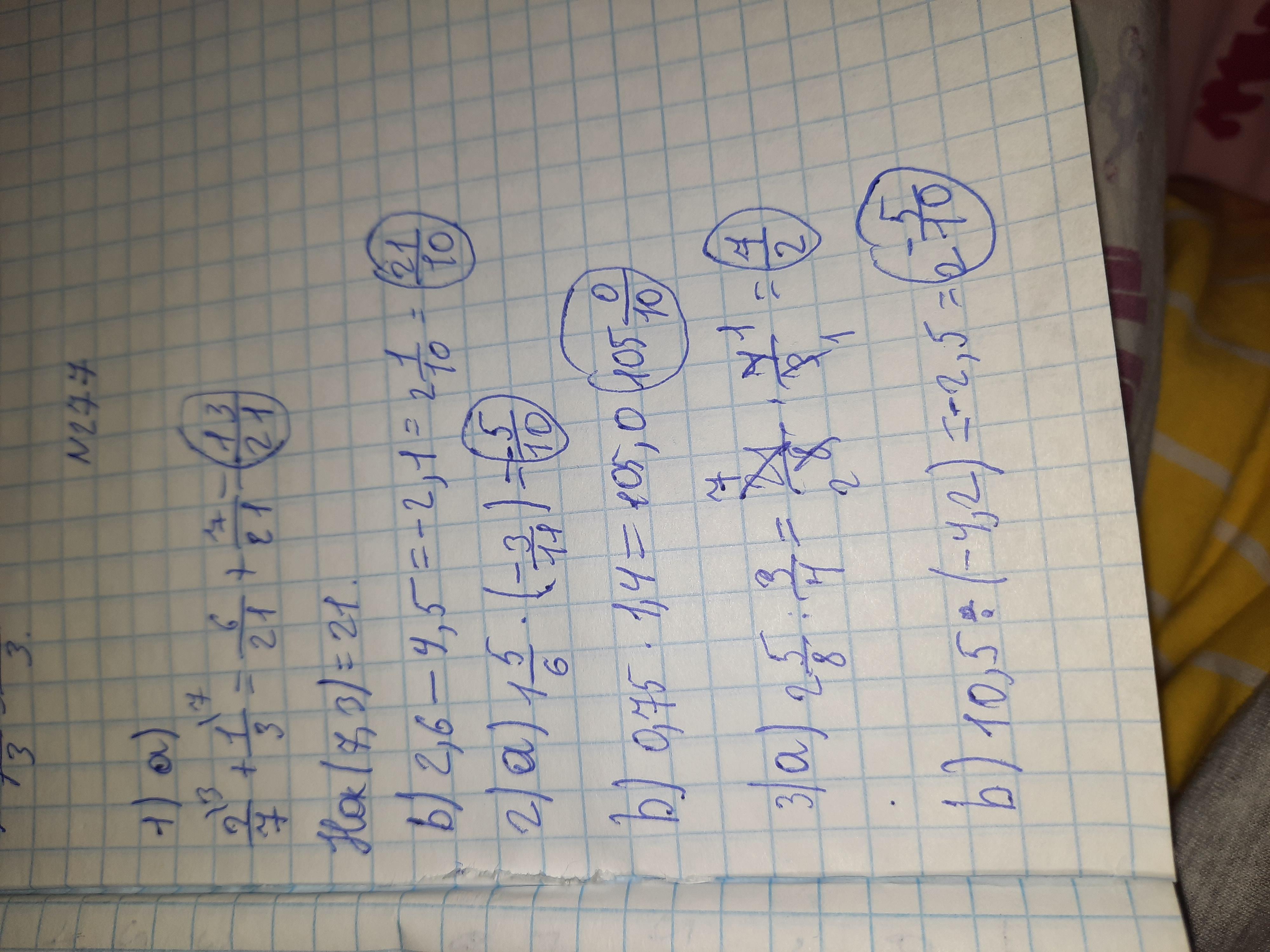 m (где п 277 Значение выражений запишите в виде рационального числа т - целое число, n- натуральное число). 1)сумму: а)2/7+1/3;б)2,6-4,5; 2)произведению: а)1 5/6×( -3/11;б)0,75×1,4; 3)частное: а)2 5/8÷3/4; б)10,5÷(-4,2)