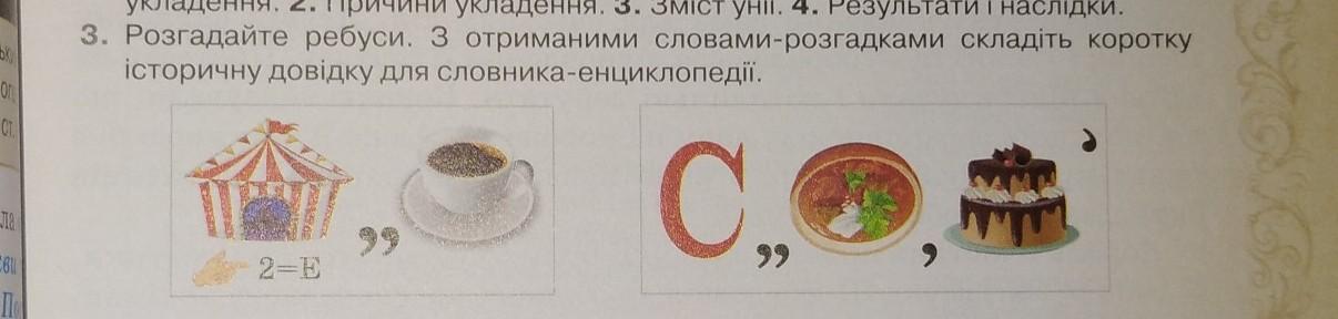 Розгадайте ребуси. З отриманими словами-розгадками складіть коротку історичну довідку для словника-енциклопедії.