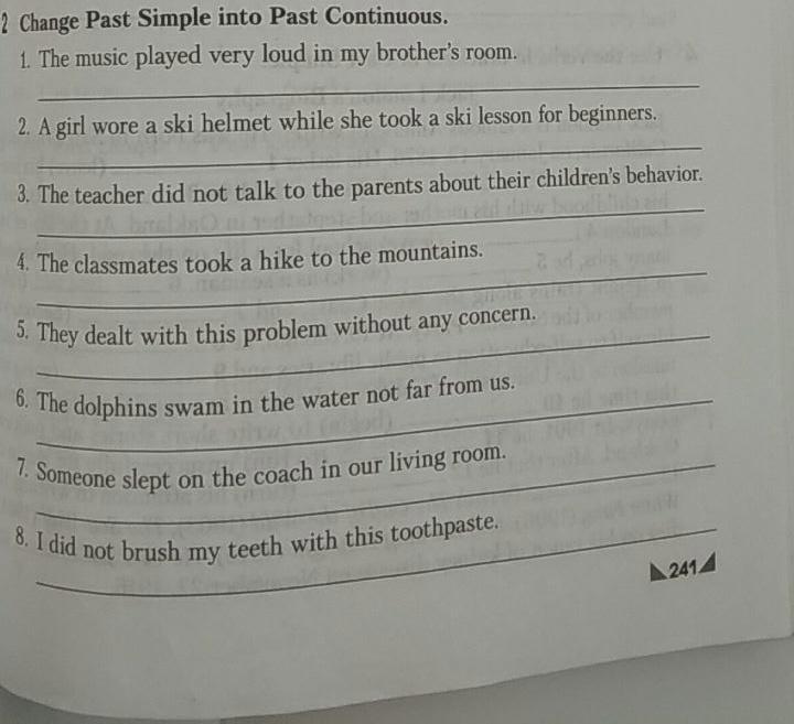 Change Past Simple into Past Continuous.