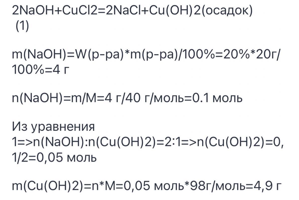 Задача Определить массу осадка при взаимодействии 3,2² CuOH и 2г NaOH