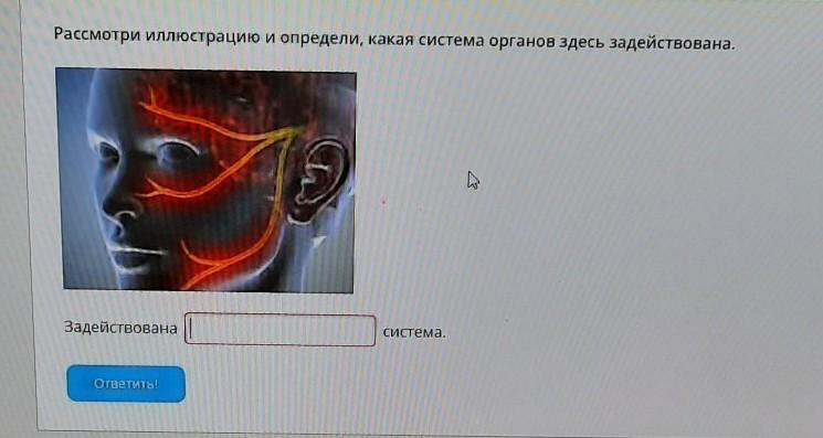 Здесь задействована нервная система. Изображён тройничный нерв.