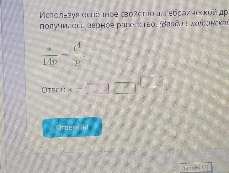 используя основное свойство алгебраической дроби, замени знак * алгебраическим выражением так, чтобы получилось верное равенство