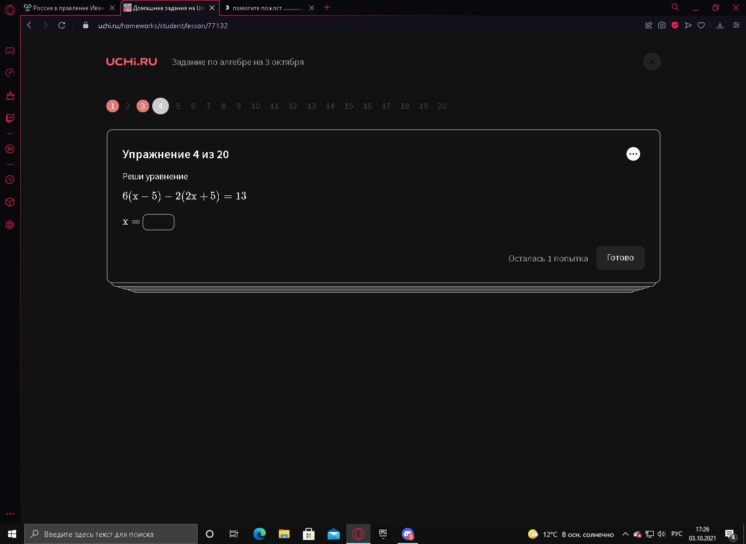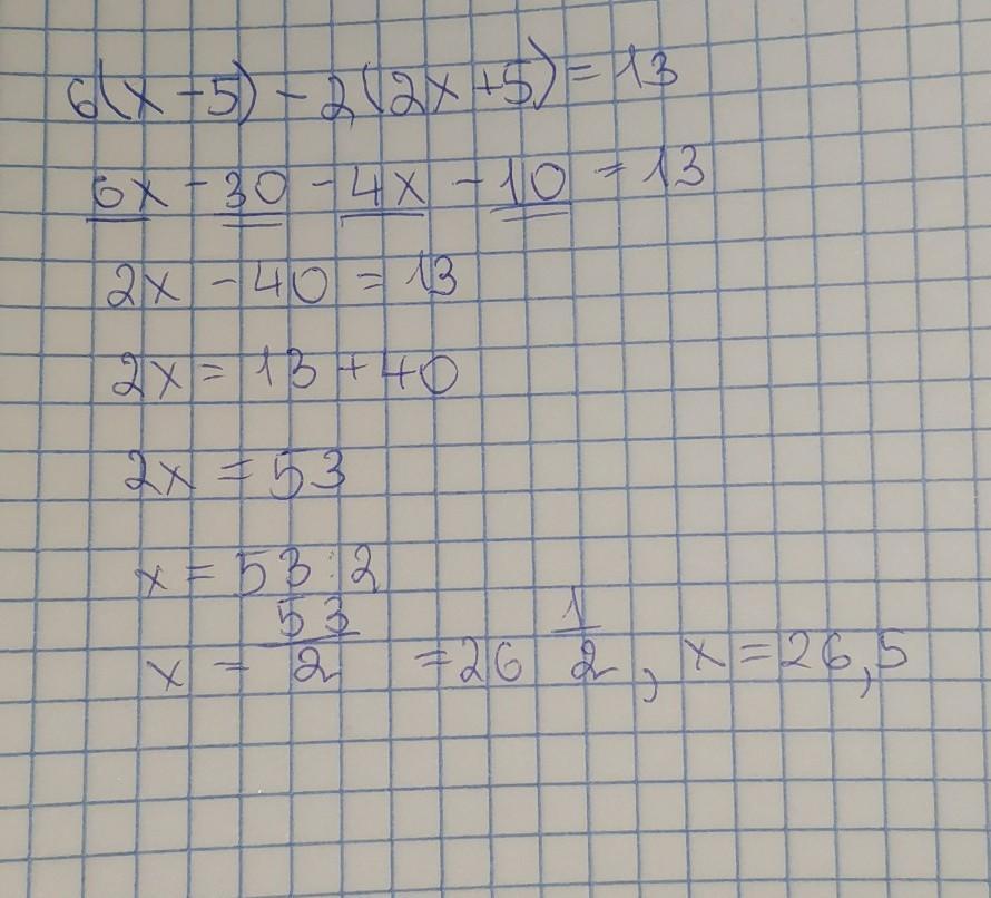 6(x-5)-2(2x+5)=13=6x-30-4x-10=13