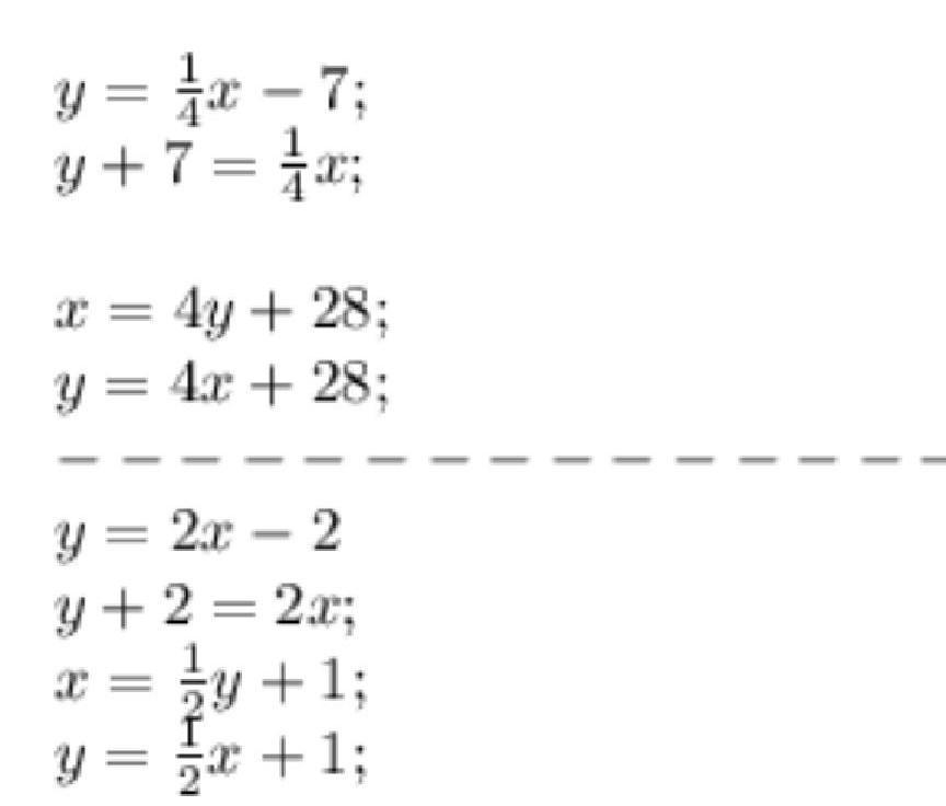 1) y = 1/4 x - 7 Взаимо обратные функции: y=4x+28