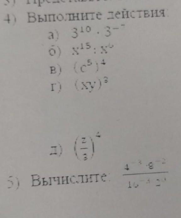 4. а) 3^3 б) (если там х в 6) х^9 в) с^20 г) x^3y^3 д) z^4/3^4=z^4/81