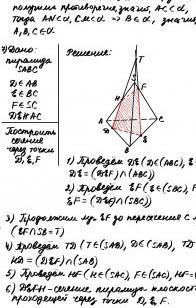 5. Постройте сечение пирамиды SABC плоскостью, проходящей через точки D, E и F, принадлежащие соответственно рёбрам AB, BC и SC, причём прямые DE и AC не параллельны.